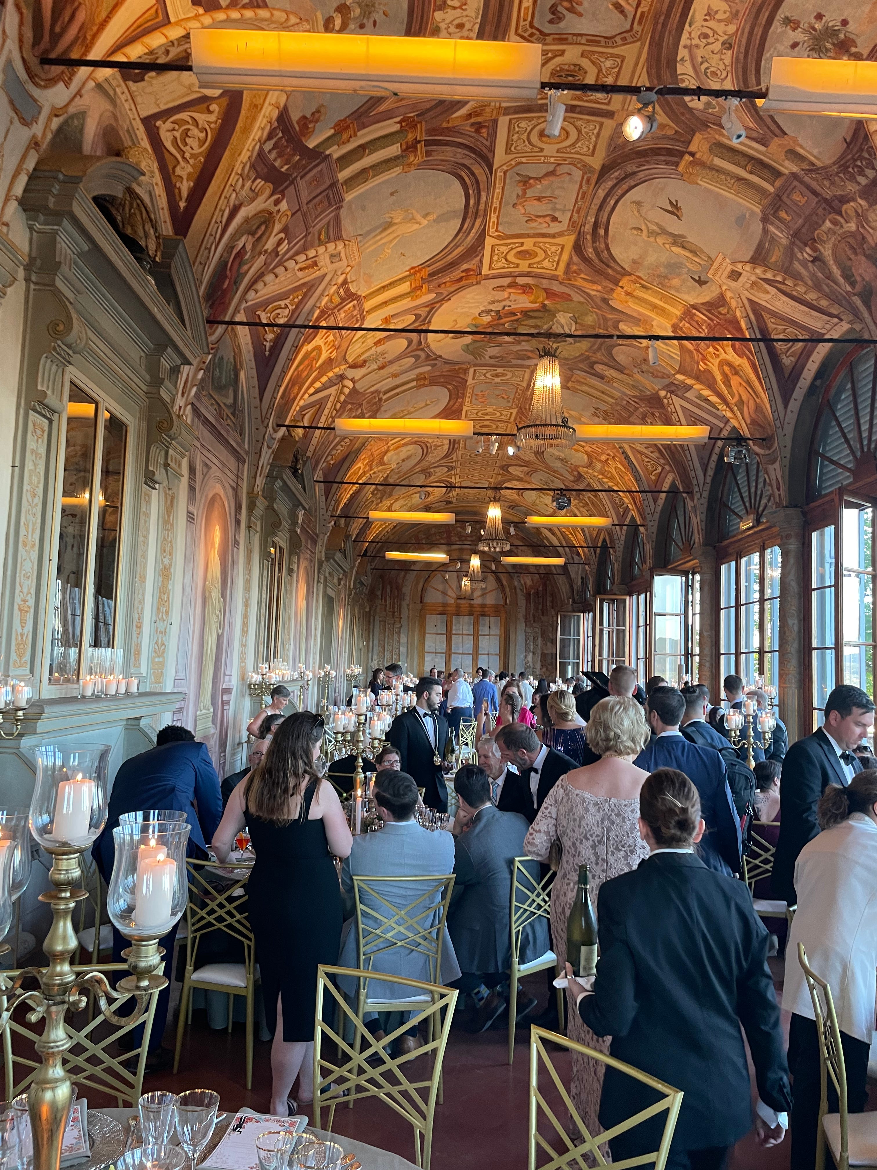 For the cocktails, we were outside in the garden, sipping champagne and enjoying hors d’oeuvres, while taking a picture every 20 seconds of the breath-taking views. Once the couple arrived, we were literally paraded via drum-line and trumpets around the venue to the front door where we were greeted by some sort of flag-throwing dance team that performed a ceremonial routine for ~10 minutes. The scene was difficult to describe but needless to say we felt like we were attending the wedding of the Prince of Monaco.